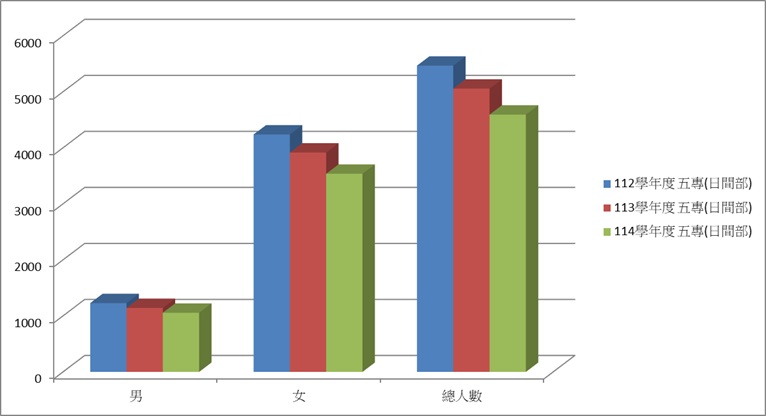 | 114學年度 | 五專(日間部) | 1056 | 3537 | 4593 |